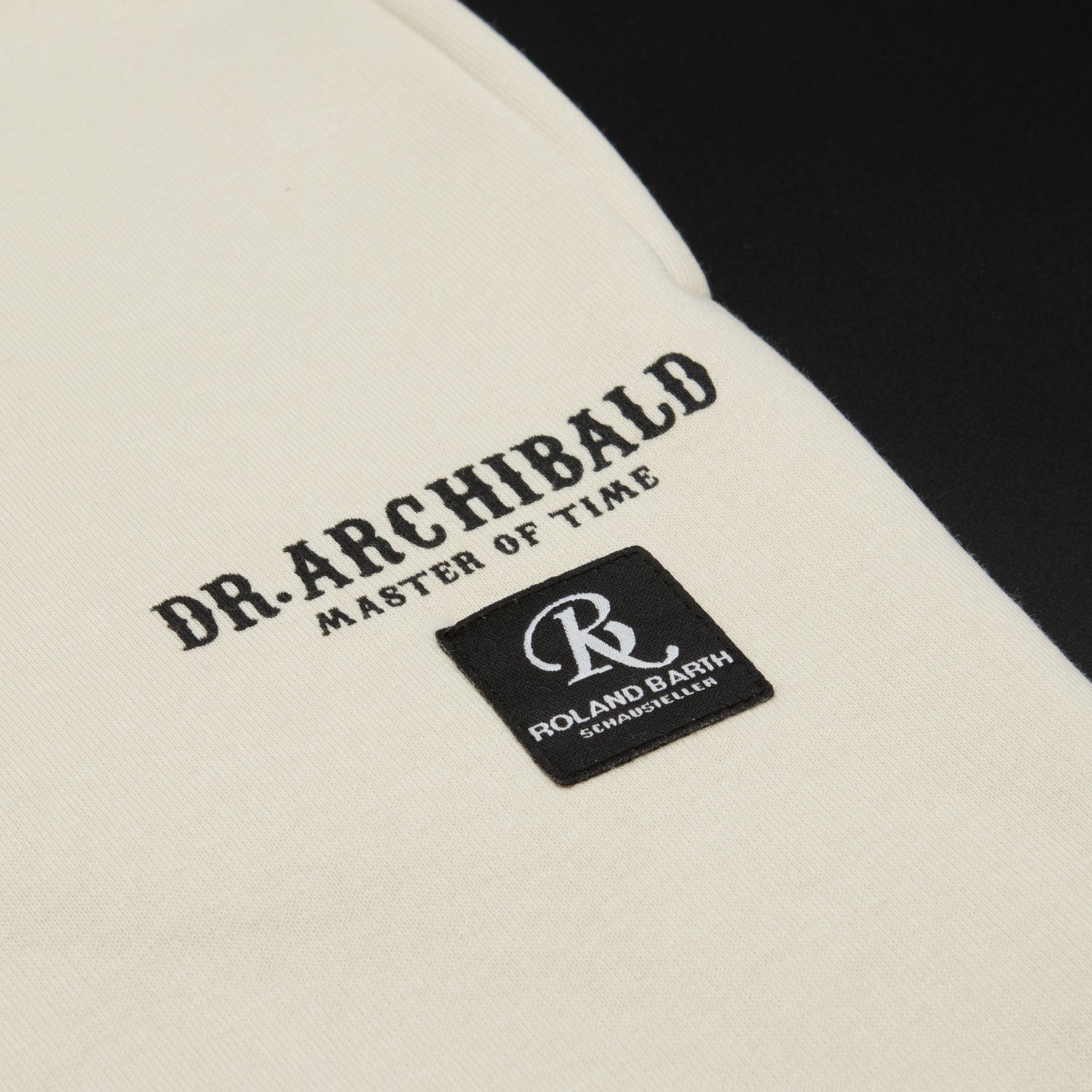 Locker, bequem und mit feinen Details: Die perlweiße Jogginghose mit Dr. Archibald – Master of Time Siebdruck-Schriftzug und edlem Batch am Bein. Perfekt zum Kombinieren mit Hoodie oder Shirt – und ein Must-have für Fans.
