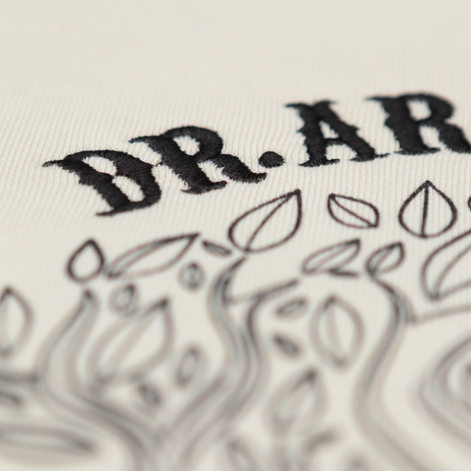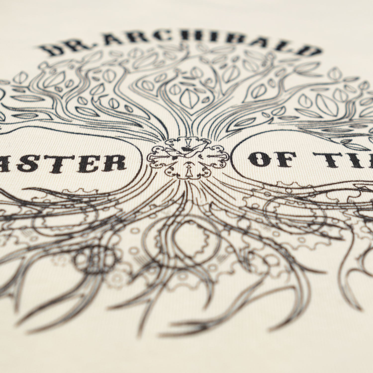 🧵 Dezente Stickerei „Dr. Archibald – Master of Time“ auf der Brust